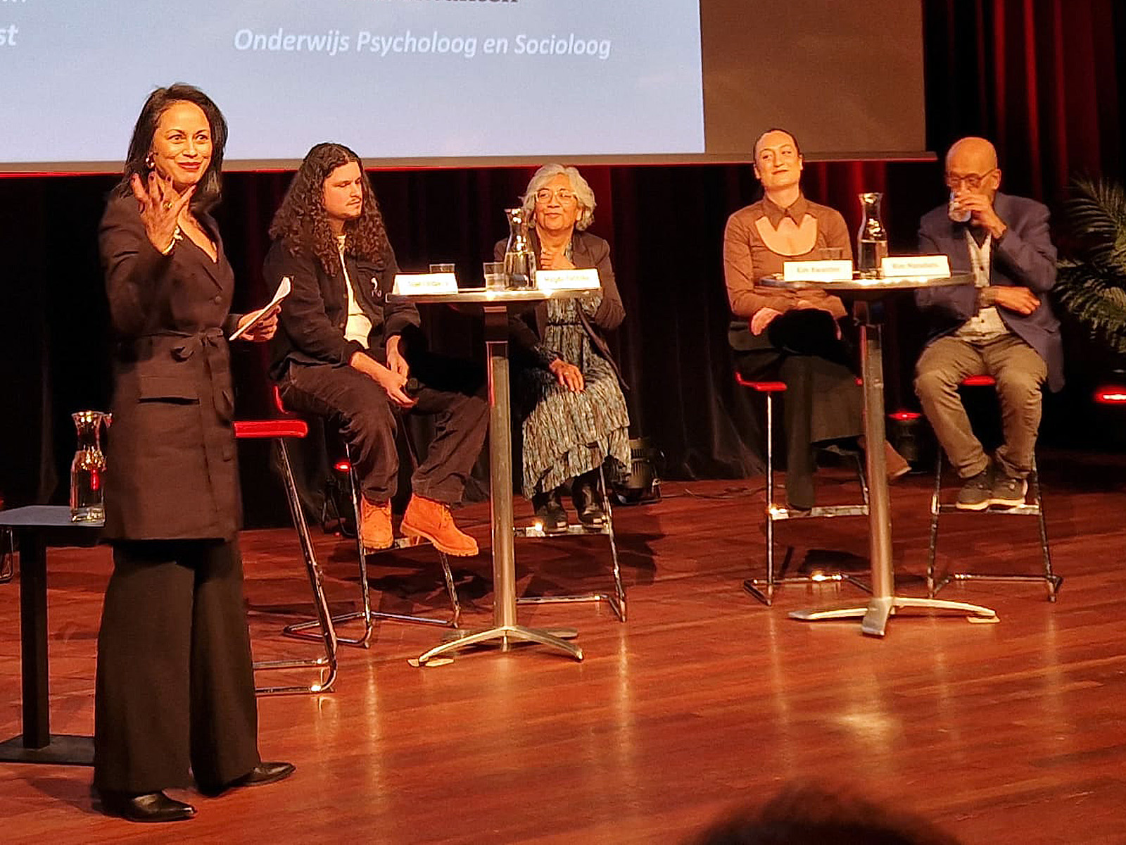 Dan volgt op groot scherm de vertoning van de acht animatiefilms. Na een lang, bewonderend applaus, begint het panelgesprek. Gespreksleider Sourbag stelt de vier deelnemers voor. Naast Loupatty zijn aangeschoven, historicus Wim Manuhutu, Magda Pattiiha, docent en ‘Leraar van het Jaar Speciaal Onderwijs’ en Kimberly Kwanten, docente bij ‘Discussiëren Kun je Leren’.