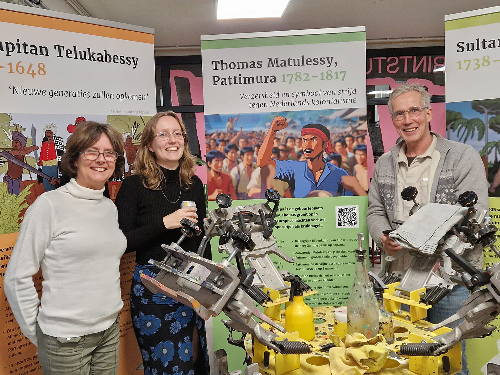 In de inspirerende omgeving van de open studio voor analoge printtechnieken Kapitaal waar Carlien en Ramon een sociale plek hebben gecreëerd waar vakmanschap, design en popcultuur elkaar ontmoeten, presenteert docent en coördinator van het creatief team, Joao Loupatty voor een jong publiek de screening van de animatieserie Pahlawan Maluku – Molukse helden tegen Nederlands kolonialisme.